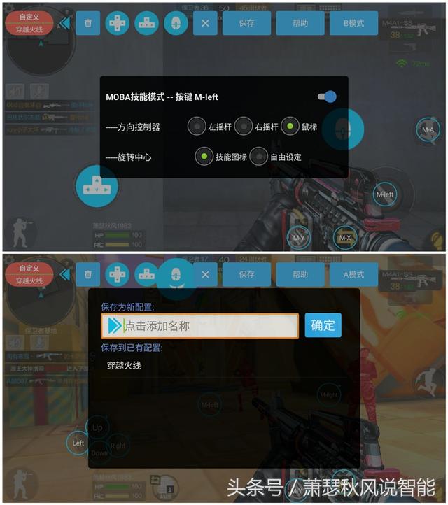 不同游戏的映射操作原理相同,但是设置按键会有差别,《穿越火线》里需要把鼠标图表拖到右侧空位,以实现鼠标控制人物枪的方向,鼠标和键盘的按键足够实现所有游戏功能。从游戏体验上来说,萧风不是很习惯手游键鼠的操作,感觉直接在屏幕上操作射击更精准些。