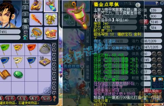 140级神农水清诀修罗傀儡妖套项链,打了13锻舍利子,熔炼非常好,加了33灵力。
