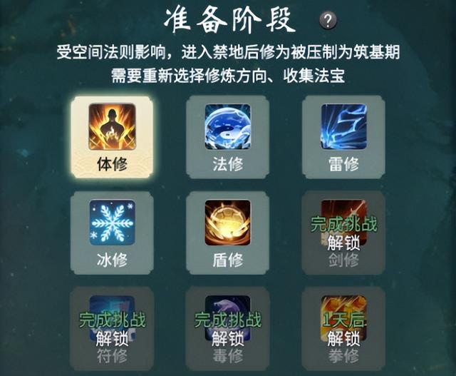 正式进入游戏之前还需要仙友选择自己的修炼方向,不再是游戏本身的体修法修,而且玩法创新九大修炼方式,玩家需要先完成挑战的任务,才能开启一些对应的选择。而且因为修为重新回归到筑基期,所以大家初始的各种属性都是一样的。