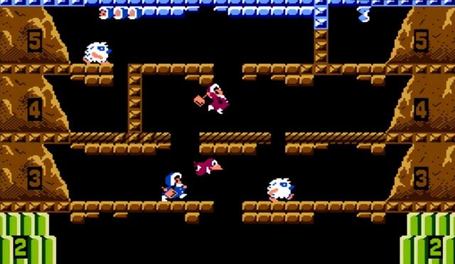 敲冰块,和魂斗罗一样,都是童年记忆里“无法通关”的游戏。虽然敲冰块一共只有32关,并且在挑战前可以自由选关,但因为本身关卡的难度,以及地图的无限循环,导致当时的我们以为怎么样都无法通关。不过敲冰块地图会打滑的独特机制,躲开怪物的紧张感,以及登顶通关需要抓住翼龙,机会一瞬即逝的刺激感依然历历在目。另外敲冰块还有一点乐趣在于,它表面上可以是双人协作通关的玩法,实际上却大多数被小时候的我们用拉屏等手段当成互坑队友的游戏。