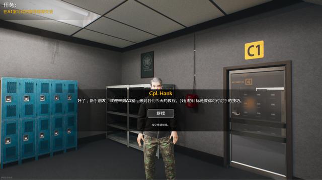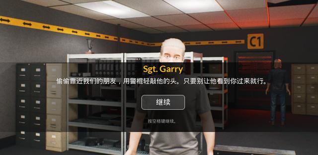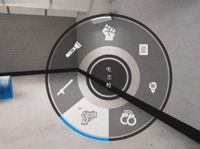 教程的第二部分是要作为警察了解清楚自己的装备,游戏中的警棍可以用来击晕对手,可以把击晕后的嫌犯铐起来,审问他们,而不需要冒枪战的危险。