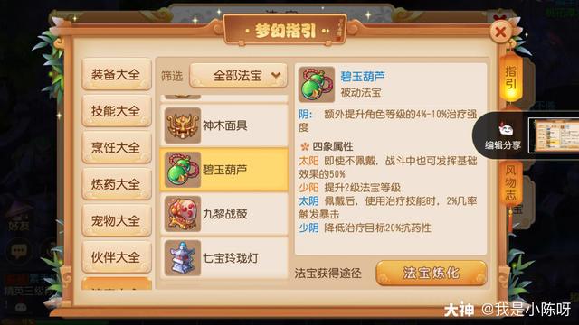 今天给大家唠唠法宝的养成。不足之处请批评指正。