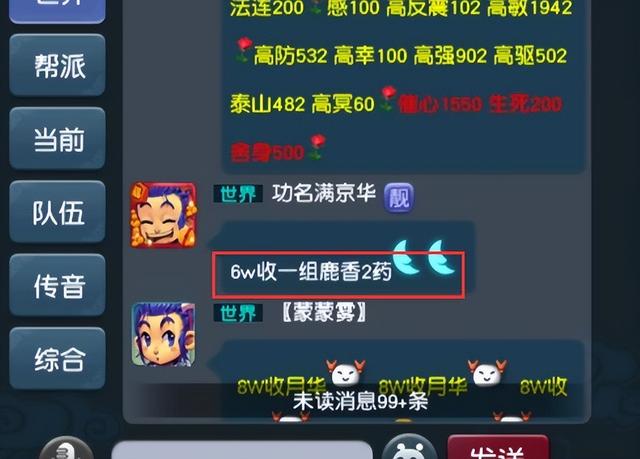 看到上面这位说二级药品的玩家了吗?小编想问一下上面的这位玩家,她想要收的二级药品是什么?因为这位玩家喊话涉及到的二级药品有两个,分别是鹿茸和麝香,这样上面的这位玩家有可能是收鹿茸,有可能是收麝香,当然也有可能是同时收购这两个道具的。