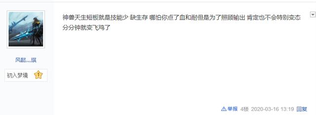其中有位网友称,如果搭配高级必杀和高级连击技能的确会有强悍的输出能力,但同时生存能力便会存在一定的不足,而神兽本身技能较少,因此为了持续性的输出必须要拥有高级隐身技能来提升站桩能力。