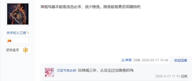 在故事的开始有位玩家称自己在浏览摆摊商城时发现大部分超级神鸡都被打造成为了一只隐攻宠物,于是求问道:超级神鸡仅有2个非绑定技能,如果搭配了高级隐身技能将会降低15%的物理攻击能力,再加上高级连击技能也会降低20%的物理伤害结果,并不利于宠物发挥强悍的实力,为何不搭配高级必杀与高级连击技能呢?这样攻宠的价值才能够体现出来。路过的网友们看到这名玩家的疑问,瞬间展开了激烈的讨论。