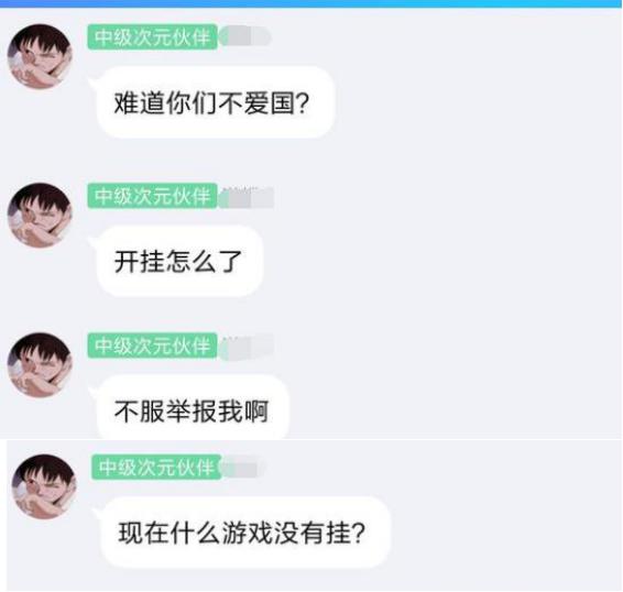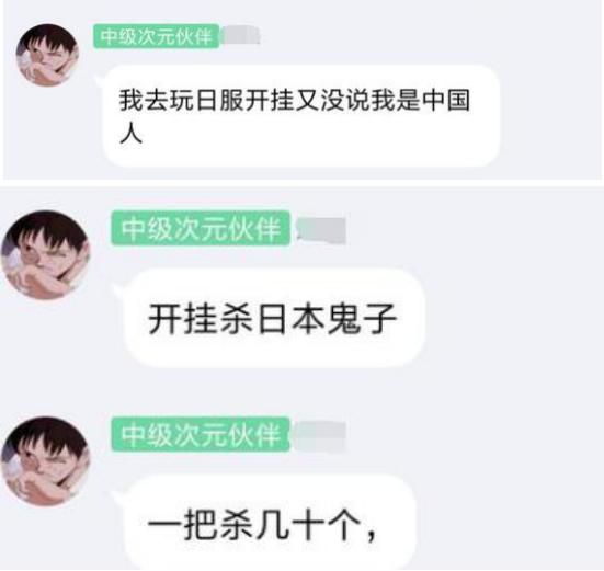 “我开挂去日服屠杀没什么不对,难道你们不爱国?开个挂怎么了,哪个游戏没挂?”