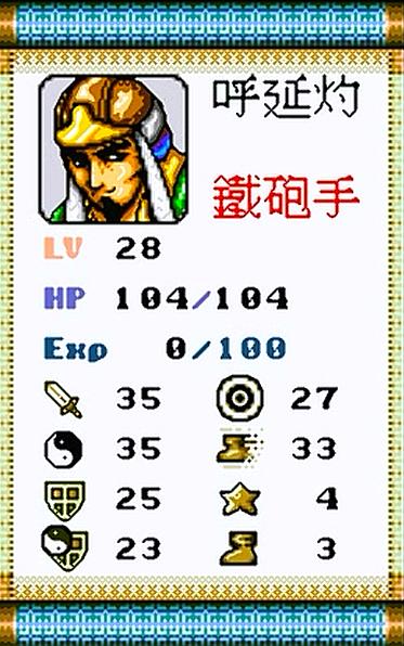 天威星呼延灼,梁山排名第8,人送外号“双鞭”。游戏中职业为炮手,同时呼延灼也是一个隐藏人物,和杨志解珍一样,不注意就漏掉了。虽然有超远的攻击距离,但移动确实太慢了,只要战场地图大一点,和队伍脱节那是必然的,这时玩家就面临选择,要么大部队慢慢移动等呼延灼,要么就不管他了。上不上场看玩家喜欢,建议后期就不上了。