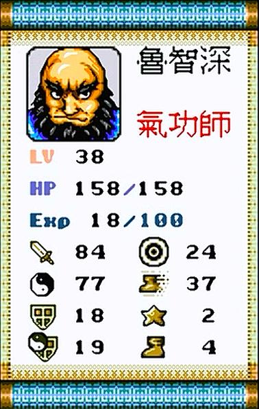 天孤星鲁智深,梁山排名第13,被人称呼为“花和尚”。游戏中和武松一样,职业为拳师,同样也是铁打的主力。