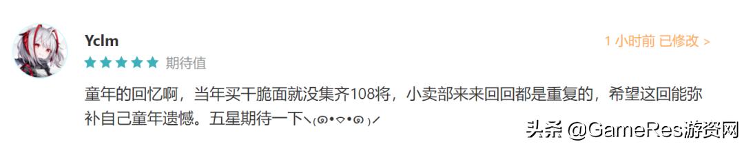 《小浣熊水浒传》此次未公布游戏开发进程,不过其TapTap页面一经放出就有情怀玩家纷纷留言并给出了五分期待值,对于众多80、90后来说,小浣熊干脆面集齐水浒卡是童年的回忆,也是童年的遗憾,当年小伙伴之间PK斗卡彷佛历历在目,更有玩家晒出了至今仍收集的水浒卡,成年后还特意去某宝买下当年缺失的某几张卡。