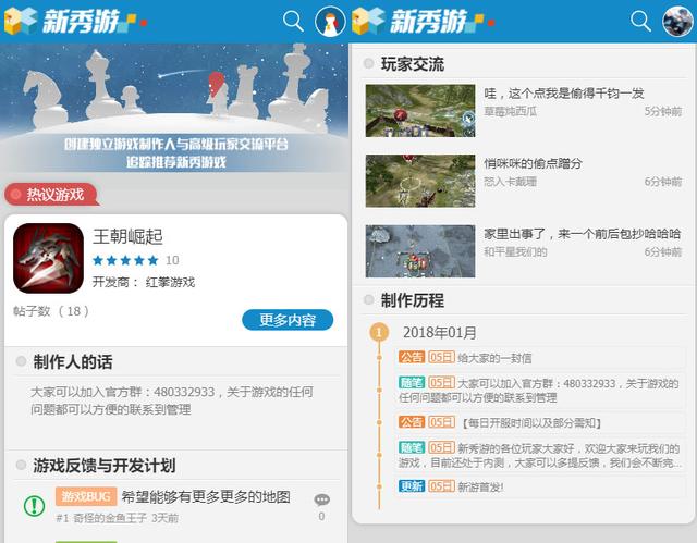 玩家在新秀游的论坛讨论的同时还能在随笔版块看到开发者的心情留言,这些内容也同样会被制作历程所收纳、记录。