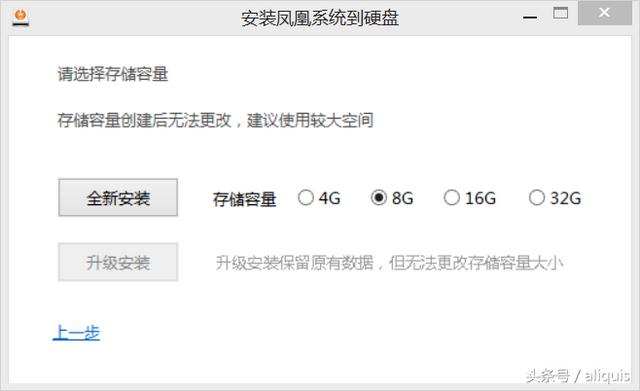 然后选择容量,安装和升级点一下就搞定了!