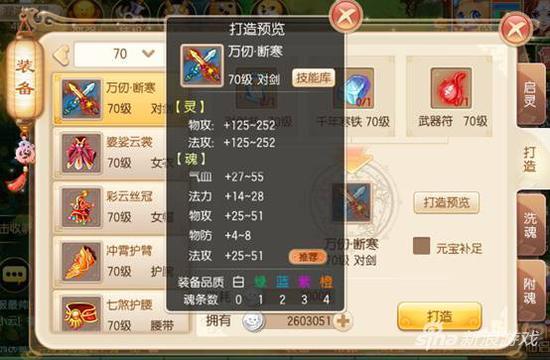 事先需要准备好材料,千年寒铁可以一次多买几个,因为各种装备都会用到。打造第一手如果是白、绿、蓝,那你可以休息一下喝杯茶什么的(不要抓狂连续打,否则会出更多低品质的装备),如果是紫装的话,那就可以稍作调整后,马上打造第二件,小编的橙装大多数都是这么出来的!