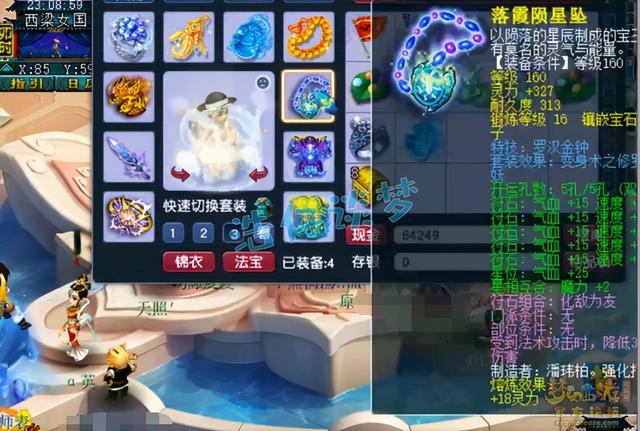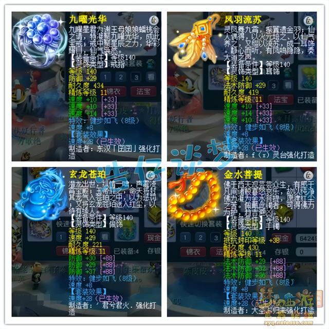 戒指和耳饰下排都是三速度,佩饰下排三防御,手镯下排三法防,全部打了11锻星辉石,特效8级健步如飞。
