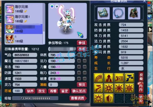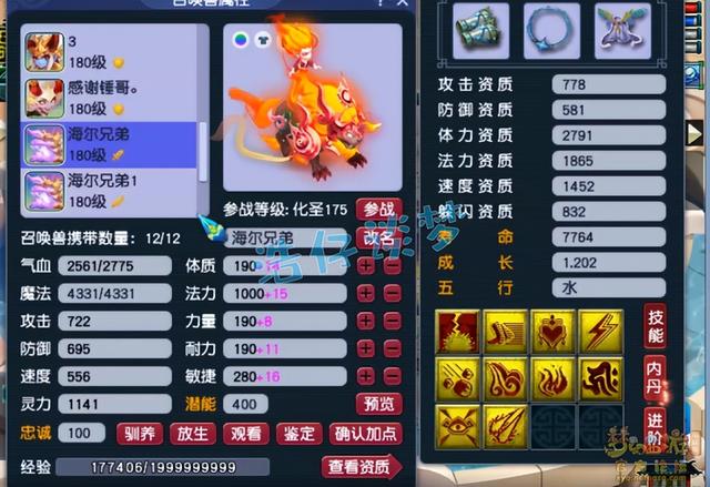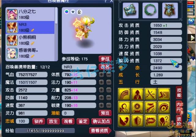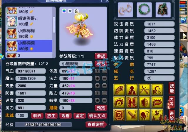 12技能耐攻力劈壁垒童子,不得不说资质和成长非常极限,攻资和防资全部吃出了加号,很完美。