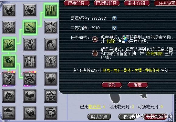 副本抓鬼团的性价比:第一,除了抓鬼弄一组全力,其他副本日常活动血敏走天下第二,不用开丹,新区一个乾元丹的成本是非常高的,2200万经验,400多万钱第三,停等级不高,不用使劲刷经验,70就够了,新区经验=钱