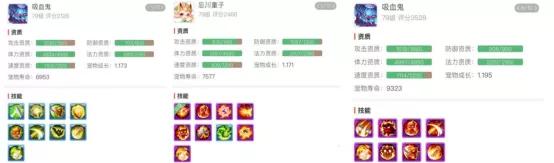 当然角色上的宝宝不止这两只,其他的宠物每一只都有亮点。9技能吸血鬼,认证9技能的忘川童子,资质亮眼8技能全红吸血鬼。这样看下来这号的优缺点还是蛮明显的,宝宝确实不错,但是装备有点不够看。
