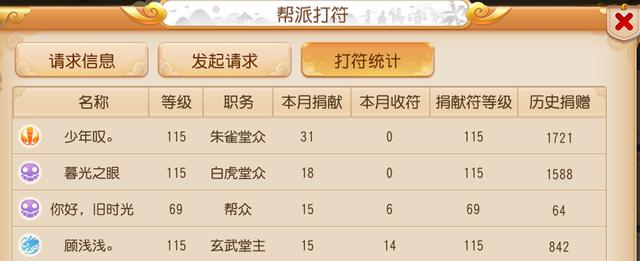 首先是帮派捐符。互帮互助,在帮派内捐献和请求临时符时,捐献的玩家会获得帮贡奖励,每人每天最多获得20点帮贡。