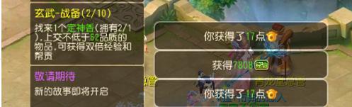 玄武堂任务:玄武堂任务是获得帮贡最多的任务,主要以提交三药和战斗为主,提交三药时,只要提交超过规定品质的三药,就能获得双倍帮贡奖励。