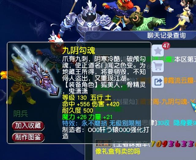 这个玩家展示的是他新出的无级别,是一把130级的爪刺。我们看到命中为556点,伤害是420点。然后魔力加26点,力量加21点。这个双蓝字特效就很猛了,分别是不磨和无级别。立马就让这把武器光彩夺目了。