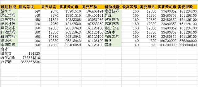 上面是小编之前的时候统计出来的想要获得融会贯通技能需要投入的成本,在这里面总共需要七亿六千六百七十七万两的梦幻币,36亿左右的经验,还需要19万的帮派贡献,所以梦幻中的那些全满角色,除去点的召唤兽和人物修炼之外,在辅助技能方面投入的成本也是比较大的,仅仅只是梦幻币的成本就需要6000左右的成本,再算上点的人物和召唤兽的修炼,大家就知道那些全满角色为什么会卖那么贵了。