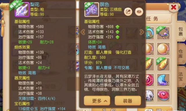根据这名玩家目前携带的武器来看,这把高治疗且携带敏耐双加的90级简易武器也拥有着不菲的价值,在摆摊商城中的价值在千万金币左右!并且该玩家还镶嵌了天降甘露器灵四件套,人物评分也达到了29267分,想来角色的整体配置也是处于勇武组一线水平,难怪这名玩家会如此纠结!