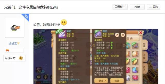 并且楼主的角色整体配置毕竟花费不小,如果转换门派,那么还需要再重新购买适合物理系门派角色使用的装备,同时宝石、阵法、法宝、潜能果...这些小细节也都是需要耗费大量的精力去调整,因此综合判断并不值得耗费太多心血转换门派。
