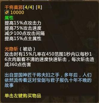这件神器从属性上来看,加攻击,加攻速,减少攻击间隔,该装备适合所有物理输出英雄。神器自带的减少攻击间隔,则能是输出英雄的攻速突破上限,概率触发的光影斩,则类似于一个450范围的技能伤害,从而使输出达到最大化。适合英雄【大乔,邓艾,曹彰等】