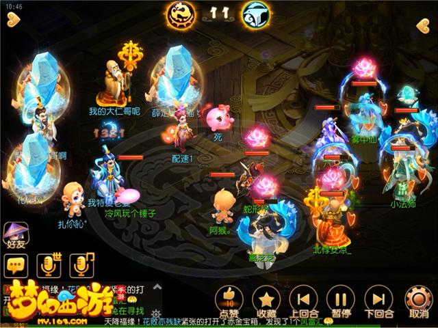 第11回合观战方方寸并没有抖中对战方的地府,对战方地府利用水清诀解除被抖的化生寺。观战方的两个月宫相继利用月凝分别控制对战方的狮驼来降低己方所承受到的伤害,此时对战方已是挺着三座“冰山”,场面相当壮观。