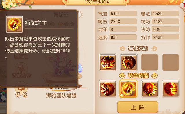 青狮王:狮驼之主原每次狮驼岭单位每次攻击提升青狮王狮搏2%伤害结果⏩4%伤害结果。