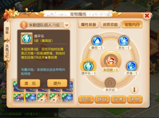 这只孤魂野鬼远远不止个性那么简单,还十分的暴力,我们来看孤魂野鬼的专属内丹清平乐,达到5层以后,回合开始如果是队伍中唯一的孤魂野鬼,临时增加自身20%的法术伤害结果,个性和实力都拥有的宠物,谁会不喜欢呢?