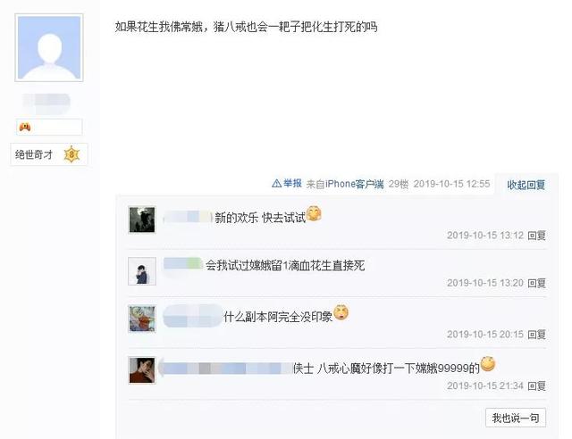 同时有些反应快的玩家立马想到,绿烟如梦侠士副本里猪八戒在剧情中也会对嫦娥造成99999致命伤害,能不能如法炮制地救下嫦娥?而楼下立马有化生玩家表示我佛慈悲嫦娥的话是可以保住嫦娥不死,只是自己会倒地。