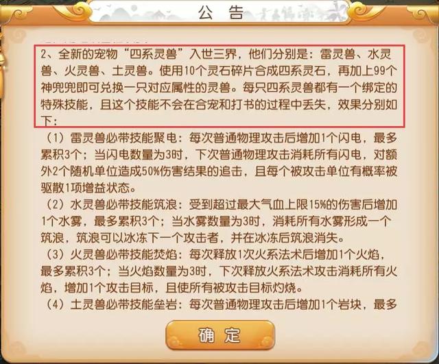 划重点3:四系灵兽全服上线
