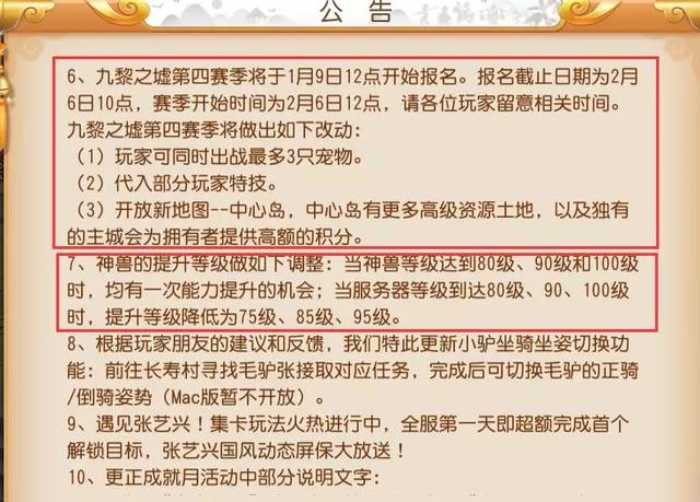 另外神兽的成长也有所调整,当神兽达到80级、90级和100级时,均有一次能力提升的机会,可谓是神兽党玩家的福音。