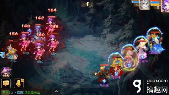 主怪是大唐,右1是狮驼岭,左1是龙宫,宝宝可以保护主人以免被直接扫死,或者等待第2回合,助战的医生拉人,优先杀掉主怪,横扫完以后防御力降低,很好杀。如果玩家是大唐的话,建议第二回合再扫,以免第一回合被打残,浪费回合数。