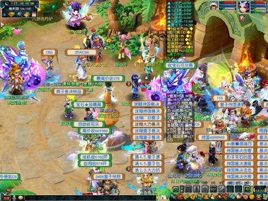 区内地摊经济十分发达,建邺城、傲来国、长寿村、擂台附近、长安酒店门口、长安城门口、擂台下均有大量摊位。