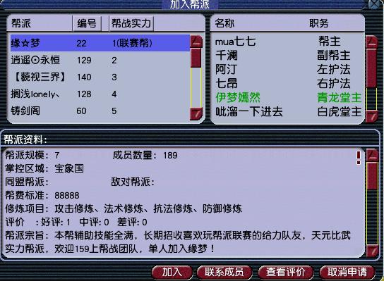 现朱紫坊区内联赛帮派为“缘梦”,算是区内占据的统治地位帮派。