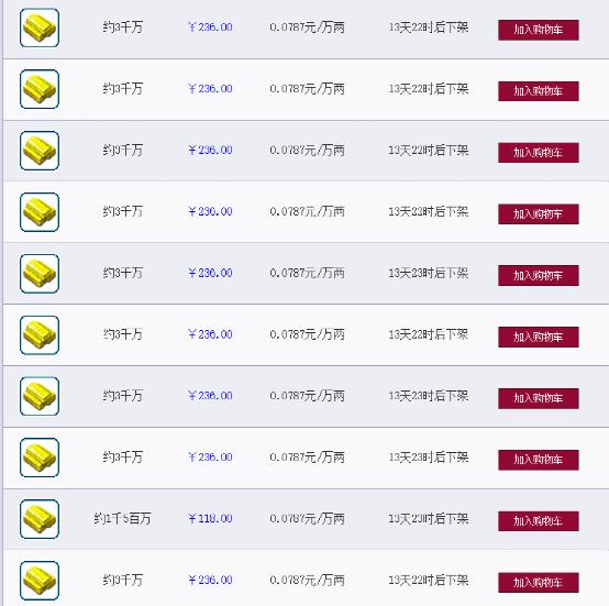 朱紫坊区内金币价售价处于全服平均水平,3000W寄售价约为236元。