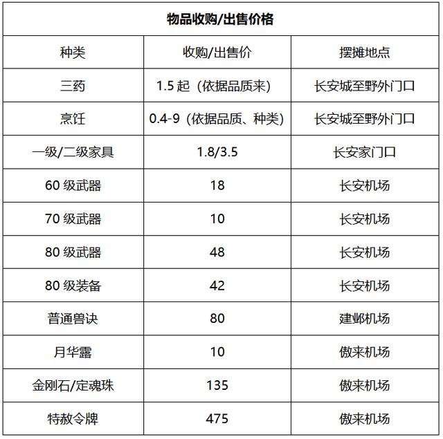从上表可以看出,朱紫坊大部分收购都在天台完成,区内临时符价格十分便宜,大部分日常产出物品的收购价都不低,副本合作也十分便利,再加个便宜的点卡和较高的金币寄售价,游戏环境相对不错。