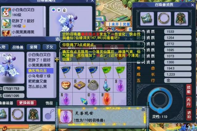 小伙伴们,你们觉得这位玩家的运气如何?你们在给召唤兽进阶110灵性的时候,都进阶了几次?来和大家分享下吧。