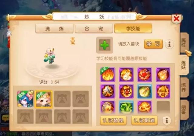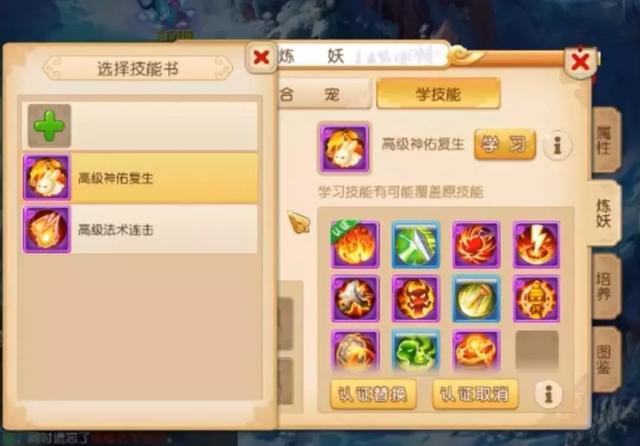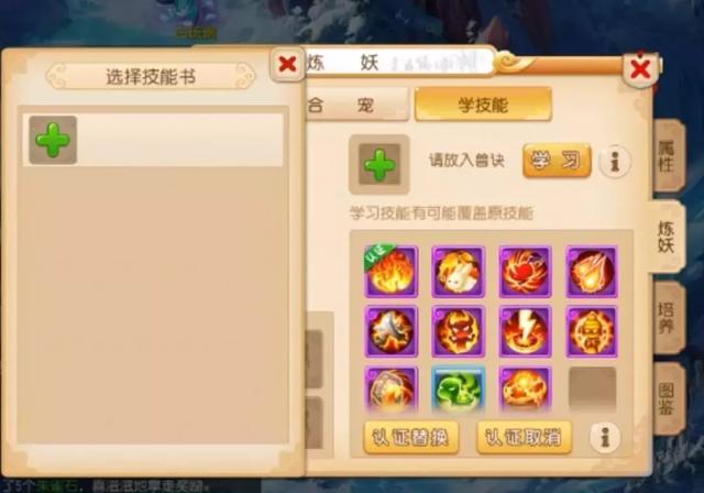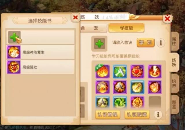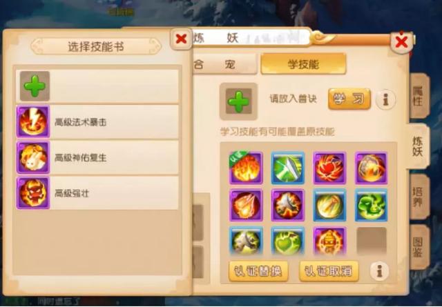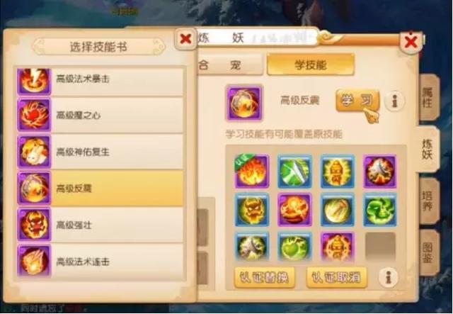 然后上了一本高级反震,顶掉了刚上好的高级招架给顶了,那就再补一本高级招架吧,它又顶了高级会心。号主想了想,先上别的技能书换换手气,于是打了一本高级魔之心到了3号位,一本高级法术连击到了5号位。