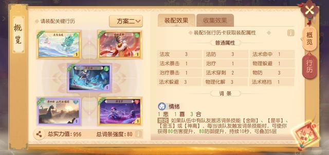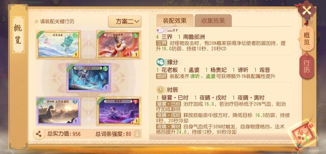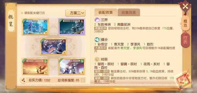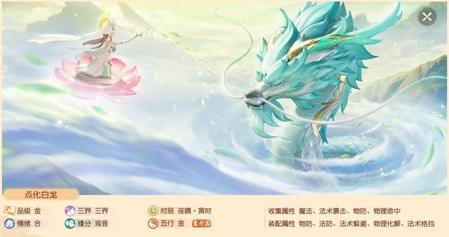 全新金色行历卡【点化白龙】能够从物防、法防、法术躲避等方面提供强劲的效果。情绪词条【合】可带来攻击及防御能力的强化,三界词条【三界】激活后,能够在攻击怪物时20%概率获得净坛使者防御加成。时辰词条方面,【夜雾·寅时】将在进入战斗后获得的治疗效果进行提升。除此之外,当金卡【回眸流转】升品后,将具备五行词条【金】,对时辰词条加以强化。
