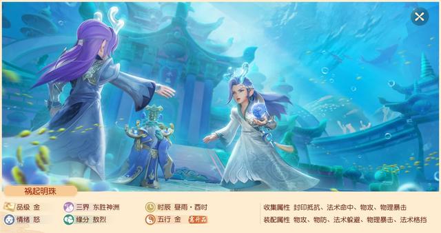 全新金色行历卡【祸起明珠】能够从物攻、物防、法术躲避等方面提高少侠的实力。同时,情绪词条【怒】强调输出,与其他情绪词条进行多样化搭配,可以带来多种提升攻击的效果。在三界词条方面,如果能装配2张【东胜神州】词条,便可以让少侠在对怪物攻击时有20%概率获得持续10秒的斗战胜佛攻击加持,提升攻击强度。缘分词条【敖烈】可与【姬泉】组合搭配激活双人缘分【龙宫】,带来更出色的效果。时辰词条上,【昼雨·酉时】将为少侠带来战斗状态下的穿刺加成。金色行历卡【祸起明珠】在升品后,将具备五行词条【金】,对时辰词条进行强化。