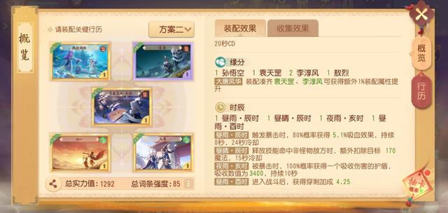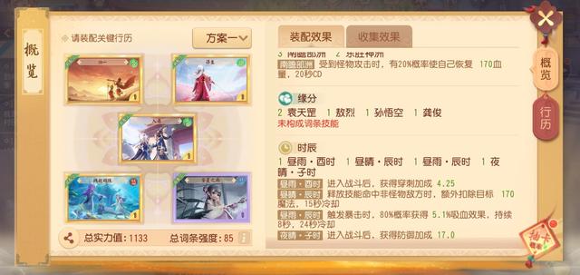 不知各位少侠有没有注意到,与本期全新行历卡【祸起明珠】、【点化白龙】一同问世的,还有两个全新的时辰词条!【昼雨·酉时】为少侠提供进入战斗后的穿刺加成,【夜晴·寅时】在自身气血低于30%时触发,将提升自身物理格挡和法术格挡!少侠们还要通过组合不同类型词条的行历卡,多多熟悉这两款全新时辰词条,说不定就能搭配出意想不到的效果!