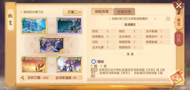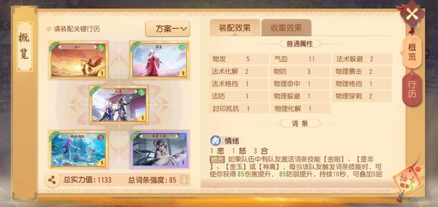 这一套搭配,物理门派的少侠别错过!在物理暴击的加持下,出色的物攻属性将发挥出更大的威力,同时,也具备不弱的物理命中和物理穿刺水平。3【怒】+2【合】的情绪词条搭配可使技能额外造成伤害,进一步提升了输出能力。三界词条【南部瞻洲】增强少侠的续航能力,时辰词条有【昼晴·雨时】触发暴击时80%概率额外获得可持续8秒的吸血效果、【昼晴·辰时】命中敌方少侠额外扣除其魔法、【夜雨·亥时】的吸收伤害护盾、【昼雨·酉时】将为少侠带来战斗状态下的穿刺加成。缘分词条构成【大唐风华】组合,获得1%装配属性提升。【归一】与【入局】升品后,这套搭配可获得五行词条【火】,加强时辰中昼晴、昼雨词条,从多方面帮助少侠发挥物理门派的输出优势。