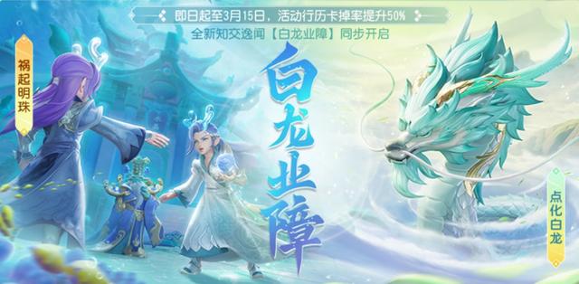 听说小白龙火烧明珠的真相了吗?这几天可牵动着许多少侠的心弦。伴随着小白龙逸闻【白龙业障】的到来,镜中寻缘同名卡池也已火热开启,特定新行历卡限时概率提升!本期卡池将持续至2022年03月15日12:00,期间,金色行历卡【祸起明珠】、【点化白龙】占所有金卡出率的50%!这两张金色行历卡究竟有怎样的威能,又该如何搭配呢?今天皮皮剑就为少侠们带来金色行历卡【祸起明珠】和【点化白龙】的搭配秘笈,速来记笔记~