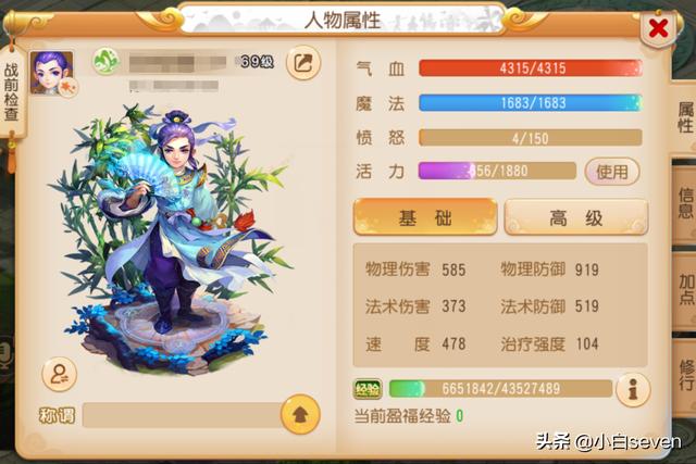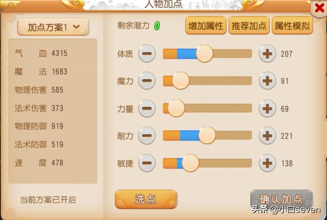 2.jiē下来说说人物怎么加点吧,既然定位就是封手了,那么速度一定要快,生存一定要高,所以我的加点方式是2体2耐1敏,速度可以,气血可以,物防不错(法防会比较差,通过翡翠石补充吧),这样zi加点正常副本掉血在90点以内,速度高于大部分任务怪,比武大会也还不错,我参加过一次比武大会,新秀1级直接连胜6场,到新秀三级