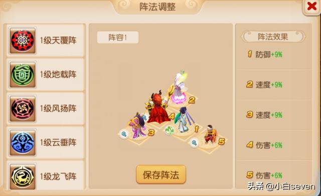 5.关于助战以及阵法,通常回合制游戏5开,都是公认的了,但是手游没有办法(什么你yòng五个手机,大神收下我的膝盖),所以游戏内jiù有助战,助战我真新推荐牛魔王一家和唐僧,牛魔王一家每个人飞沙走石