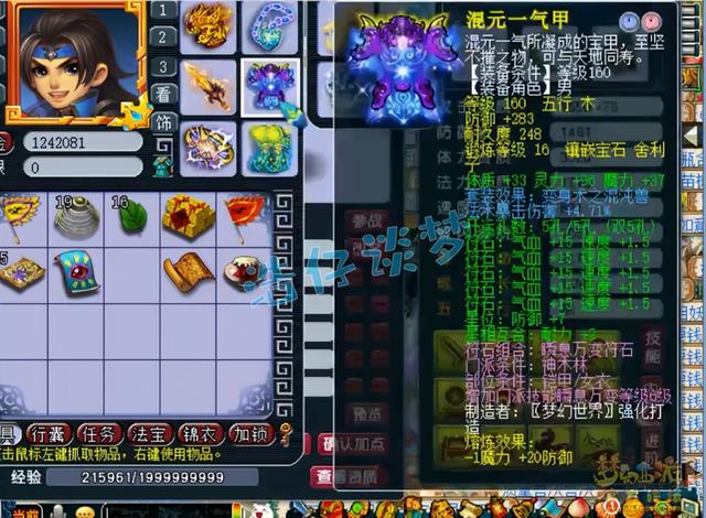 160级混沌兽套铠甲,附加法术暴击伤害4.71%,熔炼后体魔双加69,打了16锻舍利子。