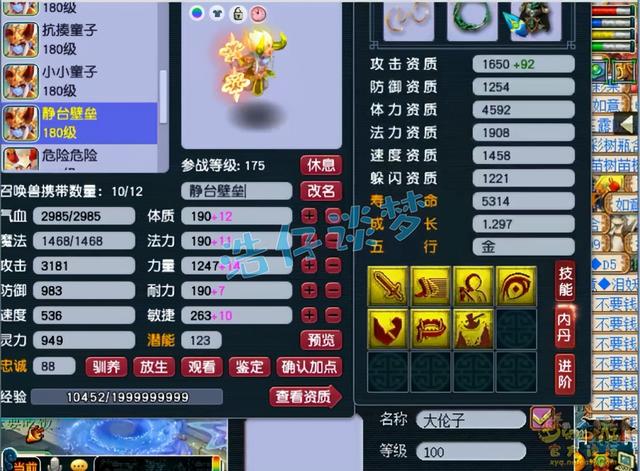 12技能净台力劈魔化童子,这只资质就需要养一养了。