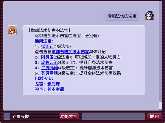 第9点,法宝。法宝除了有通用的法宝之外,还包括门派的法宝。切记:法宝的五行一定要是最优五行!
